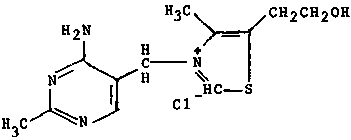 Thiamine hydrochloride is a water-soluble, colourless, monoclinic, crystalline compound. It is comparatively stable to dry heat but is rapidly broken down in neutral or alkaline solutions and is split by sulphites into constituent pyrimidine and thiazole moieties. It has a characteristic yeast-like odour. The pyrimide ring is relatively stable, but the thiazole ring is easily opened by hydrolysis. Several derivatives are stable to heat and appear to be more completely soluble in weak alkaline solutions than thiamine itself and still show biological activity in animals. These derivatives include thiamine propyl disulphide, benzoylthiamine disulphide, dibenzoylthiamine, and benzoylthiamine monophosphate. Both thiamine hydrochloride and thiamine mononitrate have been successfully used as the active vitamin in test diets for fish nutrition studies.