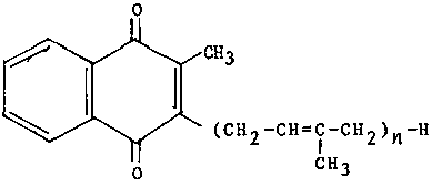 Vitamin K2 series; n may equal 6, 7 or 9 isoprene units
