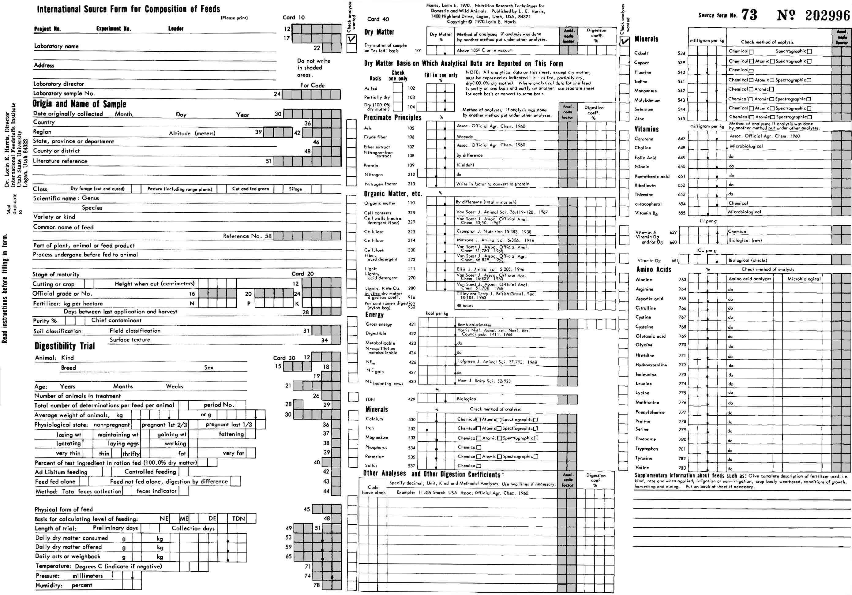 Harris, L.E., 1970 Nutrition research techniques for domestic and wild animals. Logan, Utah, International Agri-Services, vol. 1