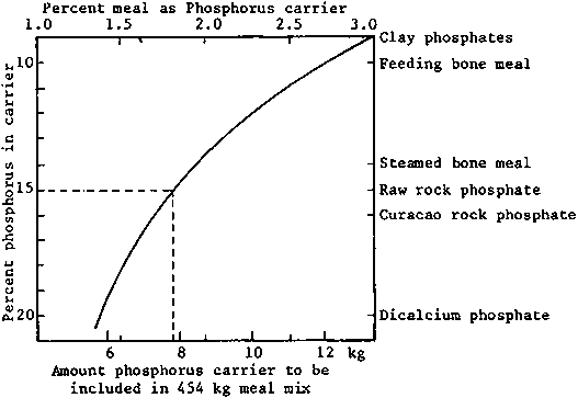 Fig. 5 Amount of phosphorus carrier needed in meal mixtures.