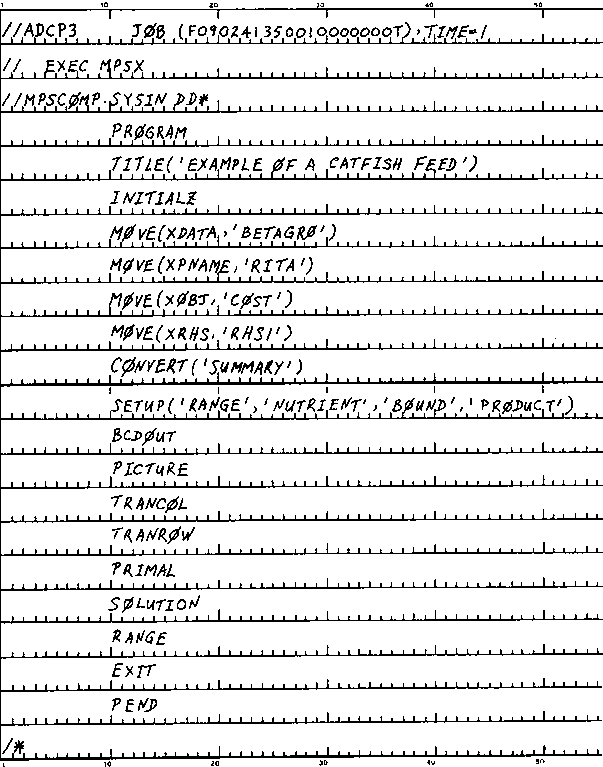 It is not the intent of this chapter to discuss fish feed formulation in the context of specific nutrient requirements. Rather, an attempt is made to describe the mechanisms of linear programming using a highly popular and readily available standard software package (IBM MPSX) and the increasingly common computer hardware, the IBM 370. As illustrations, diets for carp and catfish are formulated using a limited selection of raw materials. To provide some perspective of price and raw material availability, the example given is for the Kingdom of Thailand where aquacultural development is proceeding at a rapid pace and where the availability of a fairly wide selection of feed ingredients permits the latitude for realistic demonstrations of parametric linear programming. This latter technique represents a prodigious innovation of mathematical optimization which has contributed significantly to rapid expansion of the feed industry in the last two decades.