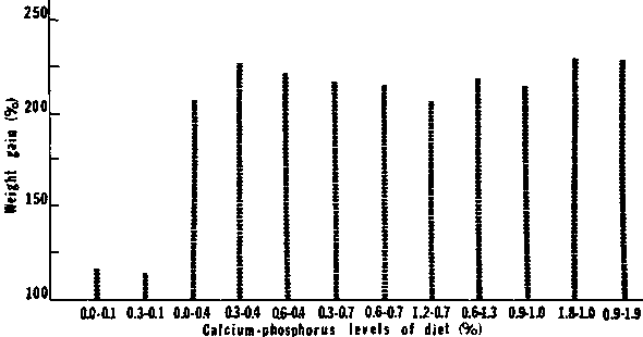 1/ Ingredient formula of the experimental feeds was: corn-wheat flakes, 47.6 percent; soybean meal (49 percent protein), 20.6 percent; anchovy fish meal, 18 percent; meat and bone meal, 4.6 percent; dried whey, 1.9 percent; animal fat, 6 percent; dicalcium phosphate, 0.7 percent; and a vitamin-trace mineral premix, 1.3 percent.