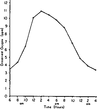 Fig. 2 Typical daily variation in dissolved oxygen content in intensively fed channel catfish ponds