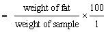 Weigh into an extraction thimble 2-3 g of the dried sample (residue from dry matter determination can be used). Place the thimble inside the Soxhlet apparatus. Connect a dry pre-weighed solvent flask beneath the apparatus and add the required quantity of solvent and connect to condenser. Adjust the heating rate to give a condensation rate of 2 to 3 drops/s and extract for 16 h. (The extraction time may be reduced to a minimum of six h by increasing the condensation rate.) On completion, remove the thimble and reclaim ether using the apparatus. Complete the removal of ether on a boiling bath and dry flask at 105°C for 30 min. Cool in a desiccator and weigh.