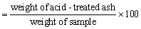 Additional tests should be carried out on materials having a high ash content to determine the proportion of acid insoluble ash present, thus providing an indication of the amount of sand or other dirt present. This will also enable detection of any deliberate contamination of expensive feedstuffs such as fishmeal. Salt (NaCl) analysis of fish meal is also required for these same reasons, as well as to avoid excessive levels of sodium in the final diet.