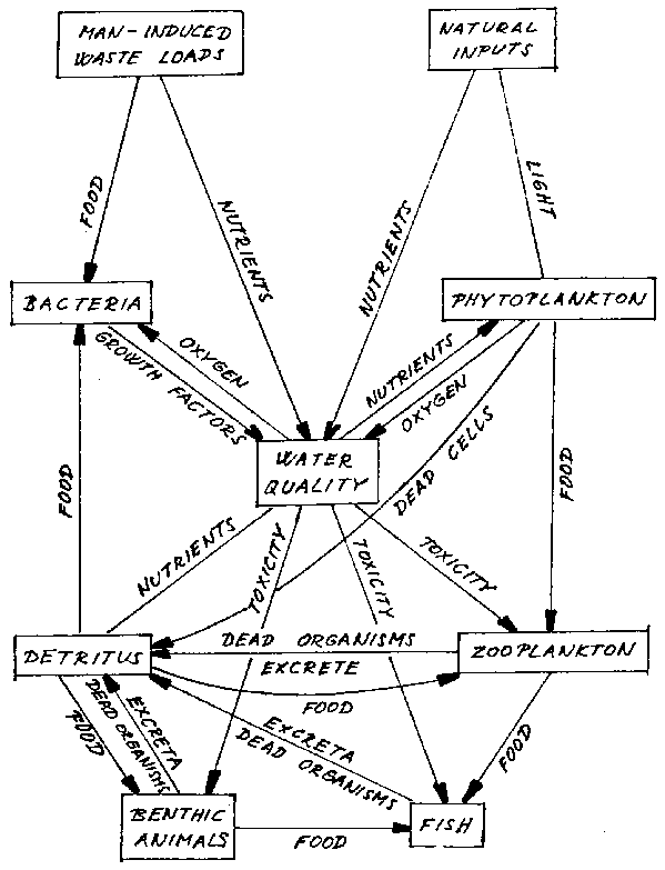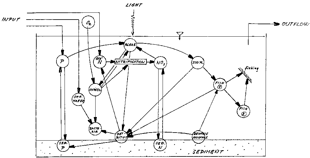 Figure 7. Schematic representation of an aquatic ecosystem (after Chen and Orlob)