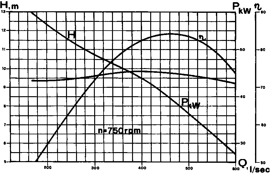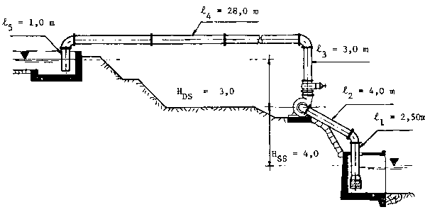 A pump with the designed arrangement as shown in Figure 24 delivers 175 l/sec. Determine the total dynamic head and the required brake horsepower.