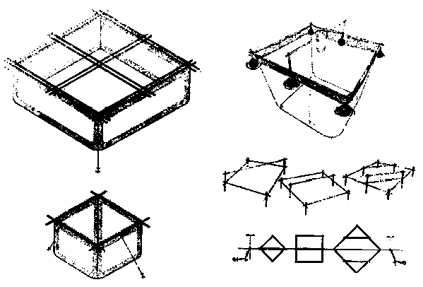 The frame can be made of galvanized steel, aluminium, timber and different plastic materials. The frame should be mechanically strong, resistant against corrosion, and easily repairable or replaceable. For fixing the different frame elements together special joints have to be used. A special joint can be seen in Figure 7. The applied rubber and hemp hose ensure flexible connection between the adjoining cages. Although the feeder is not a real part of the frame structure, one has to provide for the mounting and easy operation of a feeder during the design.