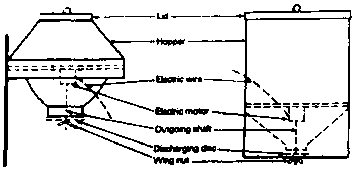 (a) Electrically operated automatic feedersThese feeders consist of three main parts; feed container; feed distributing and portioning device; timber.The designs differ from each other in the applied feed distributing device, and can be grouped as follows: