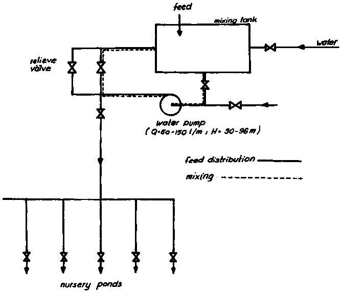 Figure 14 shows a hydraulic feeding system that is used for feeding nursery ponds.