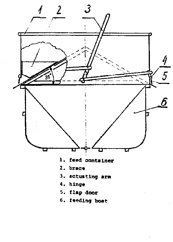 Figure 12. EWOS pneumatic type automatic feeder (Sweden) a) The scheme of the feeder