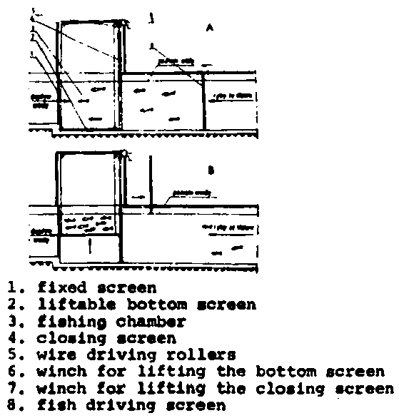 Electric grids or electrified seines can also be used for driving, where the electric field forces the fish to swim towards the catch basin. Electrified fish driving devices are shown in Figure 2.