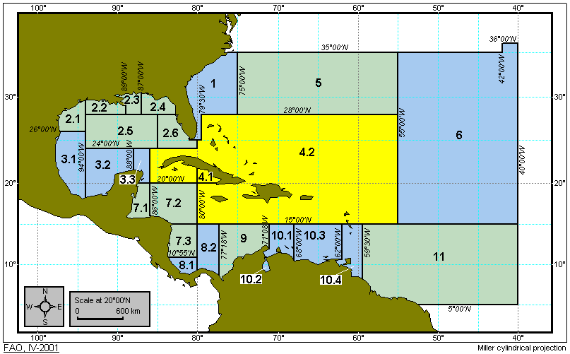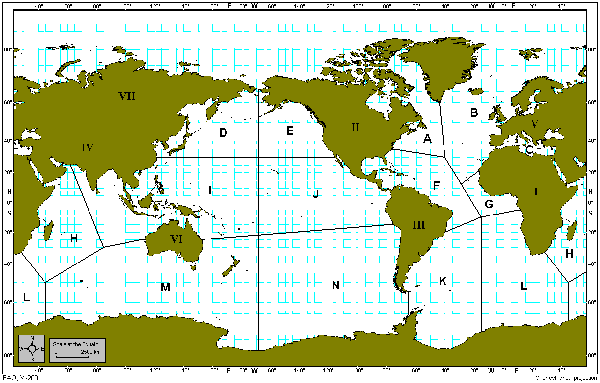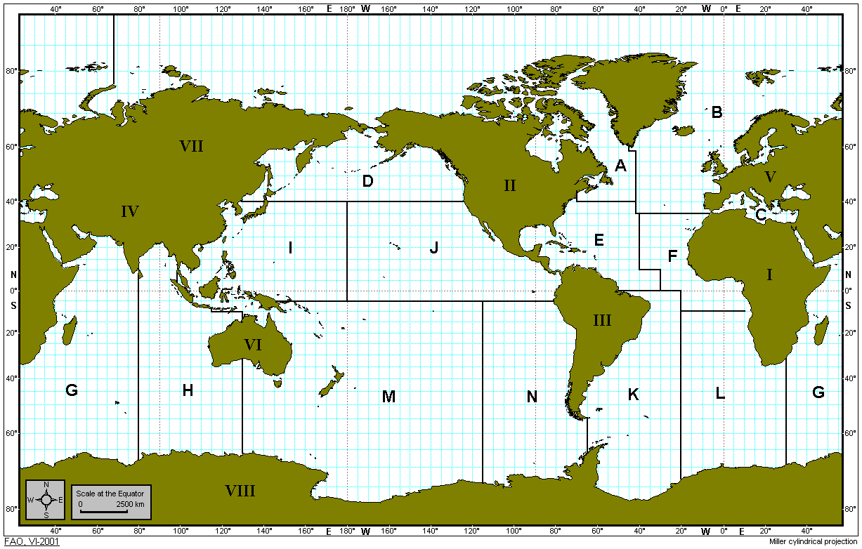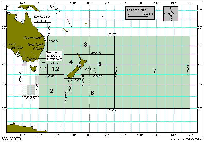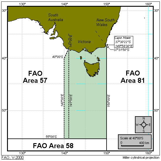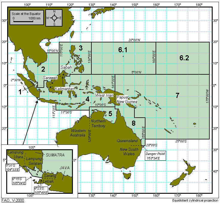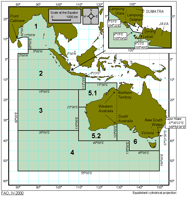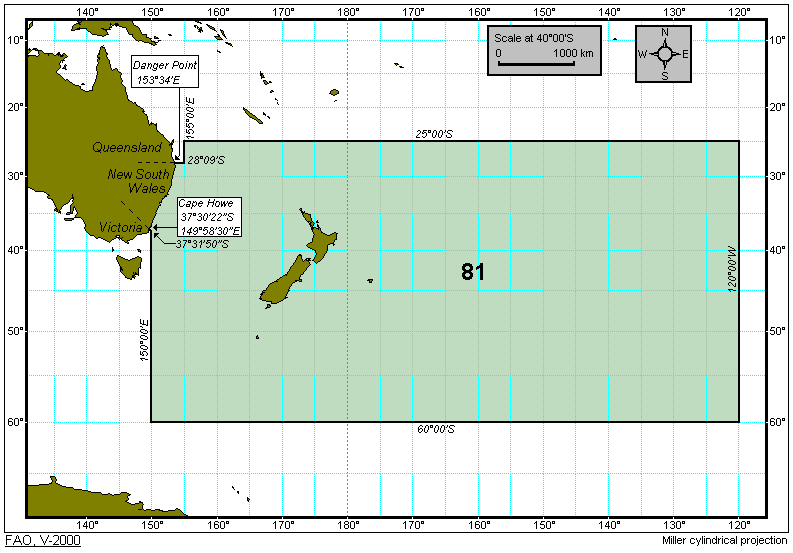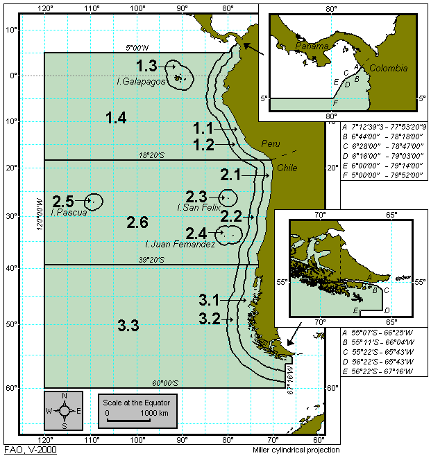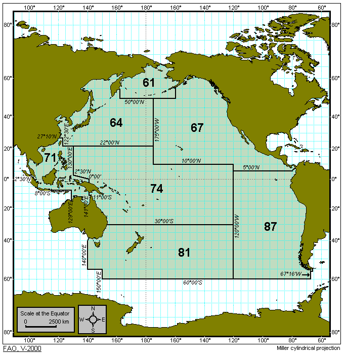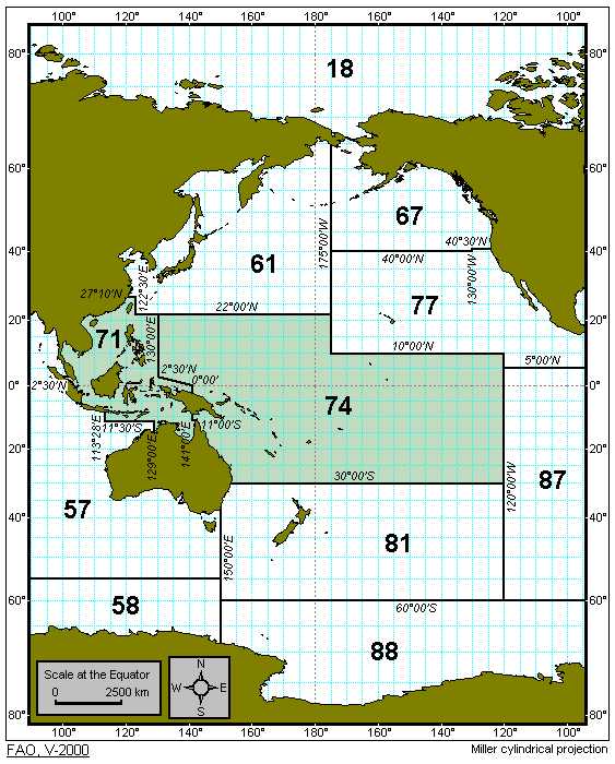 Pacific, Southwest; possible subareas of major fishing area 81.