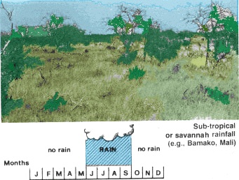savannah and Asian monsoon areas, rainfall is usually concentrated