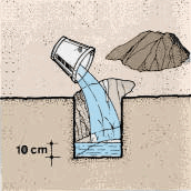 | Parfois le sol est si perméable et l'infiltration si importante qu'il n'est pas possible d'y construire un étang sans recourir à des techniques spéciales de construction. Ces techniques sont le sujet d'un autre volume de la présente collection. |