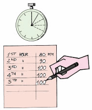 Note. On peut calculer rapidement les valeurs de h en faisant la différence entre la profondeur totale du trou (H) et les valeurs successives de P. Faites bien attention d'exprimer toutes les mesures en mètres et en secondes pour obtenir K en m/s.