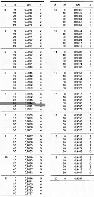 TABLE OF PROPORTIONAL PARTS, P Example To calculate intermediate cosine values using the proportional parts, for cos 7°38' for example, proceed as follows:
