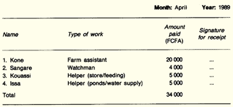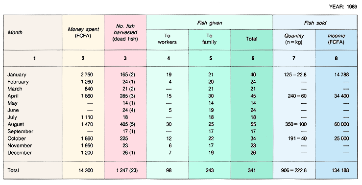1. Subsistence fish farmers need only keep simple records, which should enable them to know, month by month: