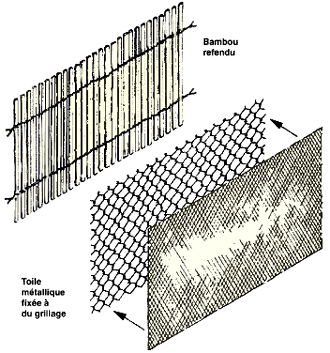 c) Le matériau de filtration est en général de la toile métallique ou plastique. Des barres de fer cylindriques soudées à une armature métallique peuvent également être utilisées.