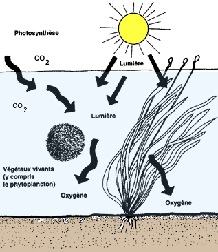 8. Les caractéristiques de l'eau d'un étang dépendent à la fois de l'eau qui a été utilisée pour le remplir et des caractéristiques du sol. Toutefois, dans l'eau même, certains processus chimiques importants se produisent: