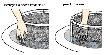 9. En cas d'utilisation de cette jarre de grande dimension, il est indispensable d'avoir un débit constant d'alimentation en eau de 12 à 15 l/min et de nettoyer régulièrement l'anneau filtrant comme suit: