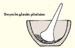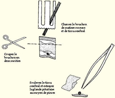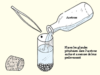 (b) Rassemblez dans le même flacon toutes les hypophyses prélevées le même jour.