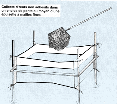 9.2 Ponte induite et récolte des oeufsChoix de l'emplacement de la ponte induite1. La ponte induite peut avoir lieu dans différents types d'enclos de ponte (ou frayères), par exemple: