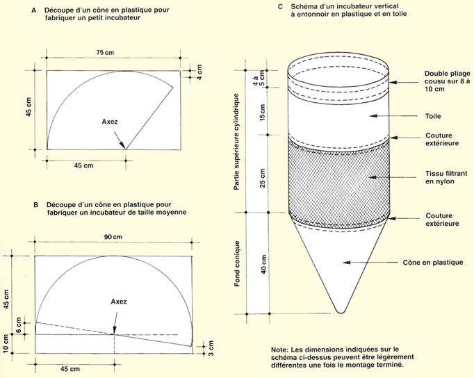 6. Ces entonnoirs fonctionnent comme indiqué plus haut pour l'incubation des oeufs (voir section 9.3), mais leur taille est généralement plus importante.