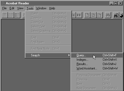 a) From the Acrobat Reader program, go to the Tools menu, then select Search and then Indexes.