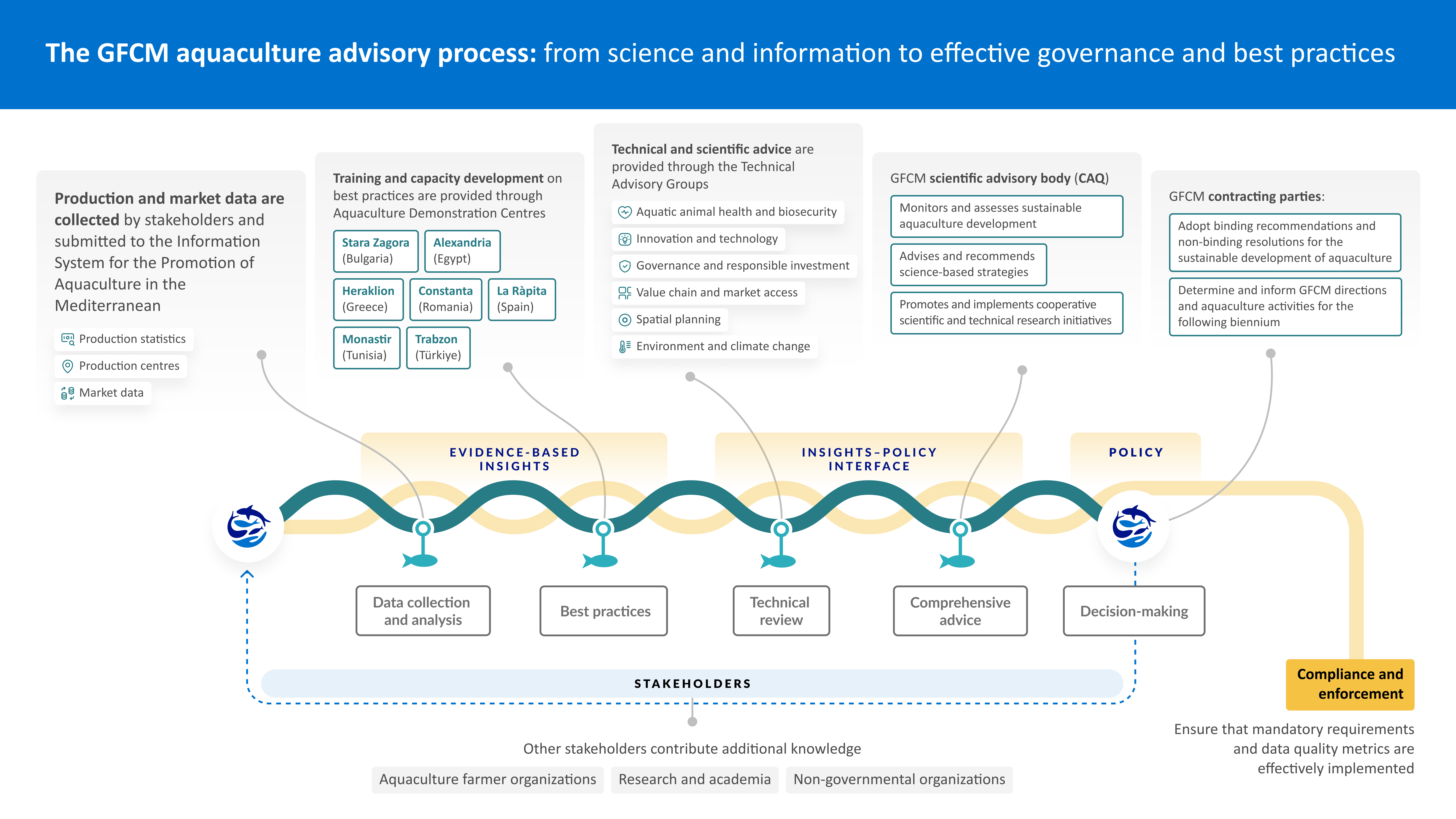 Understanding the importance of this sector, the GFCM is working towards the blue transformation of Mediterranean and Black Sea aquaculture in order to create a fair and sustainable sector that is productive, profitable and globally competitive.