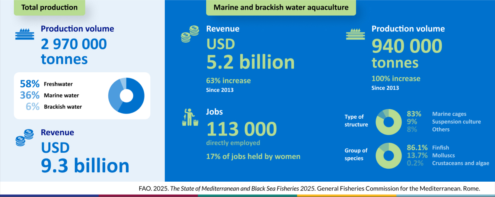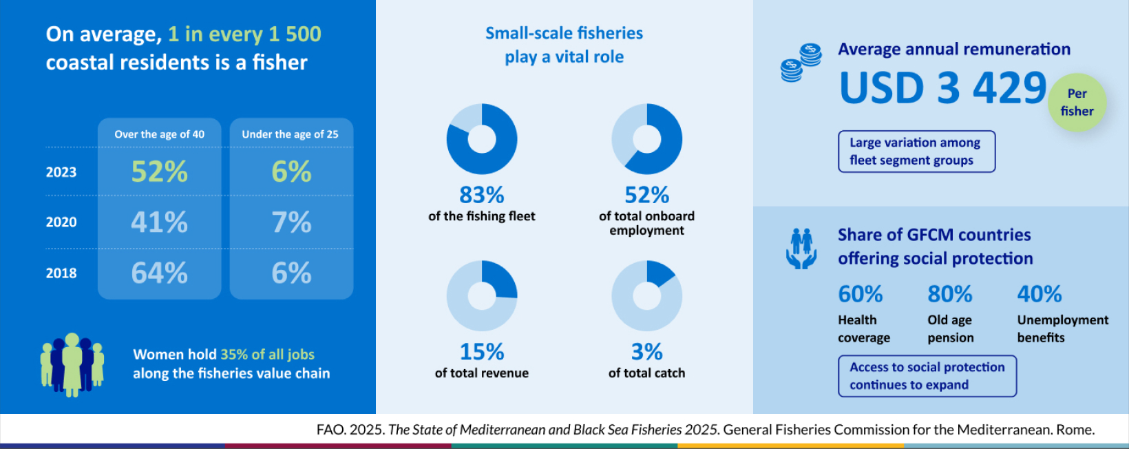 Produced every two years, SoMFi draws on official data from GFCM Members and the latest scientific assessments. It serves as a key reference for policymakers, tracking the state of the region’s stocks, the performance of its fleets and farms, and progress toward sustainability goals.