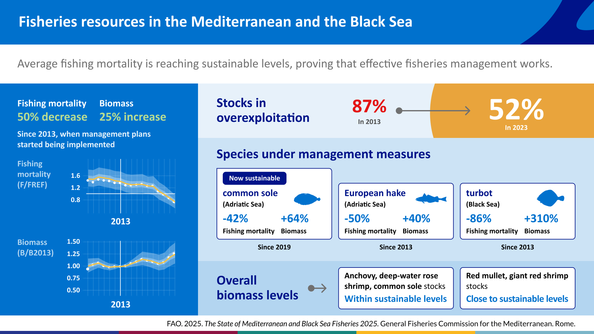 With the support of GFCM-led initiatives, countries have made major progress in science, management and sustainable practices, consolidating the foundations for food security and for the future of fisheries and aquaculture in the region.
