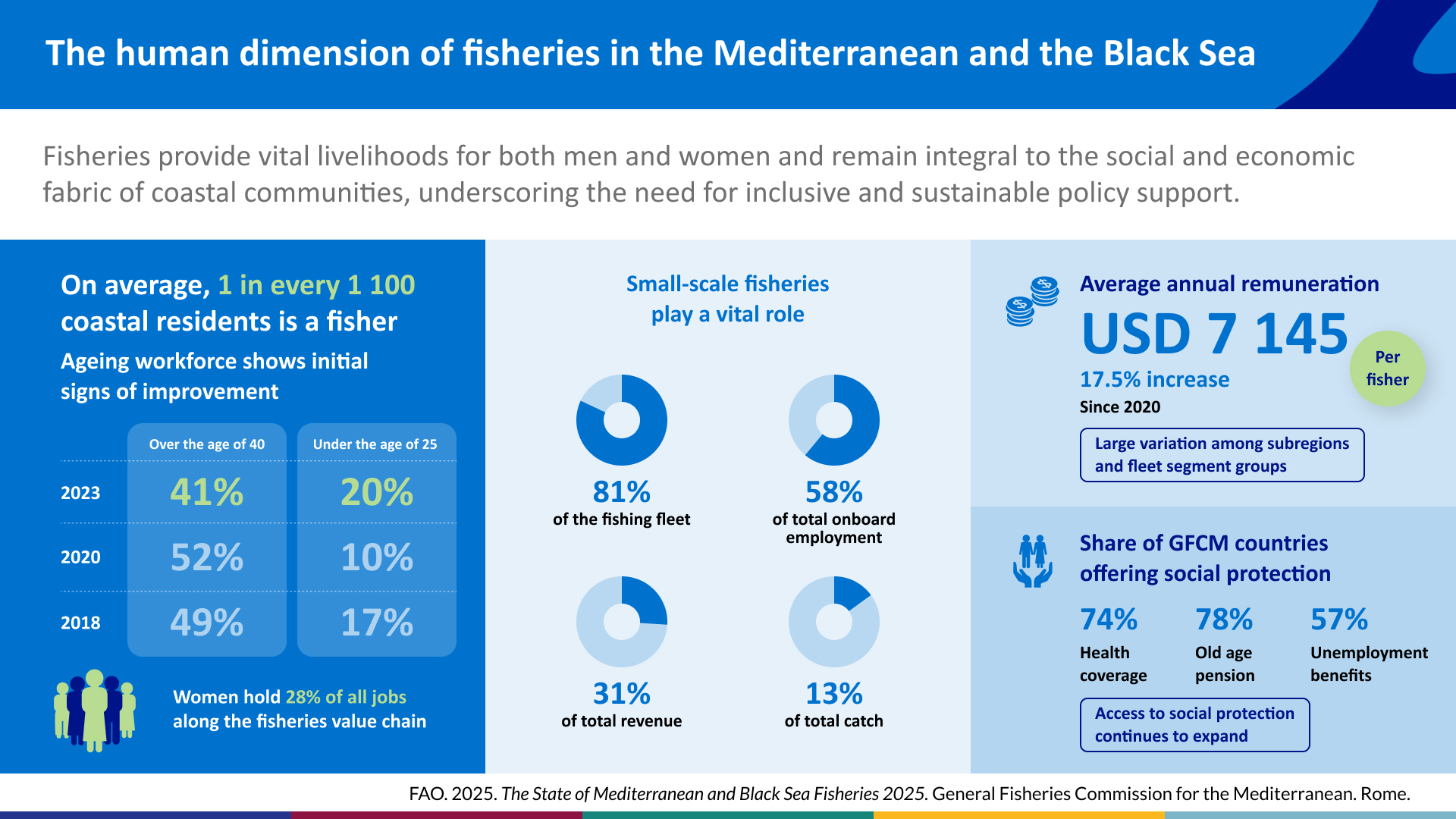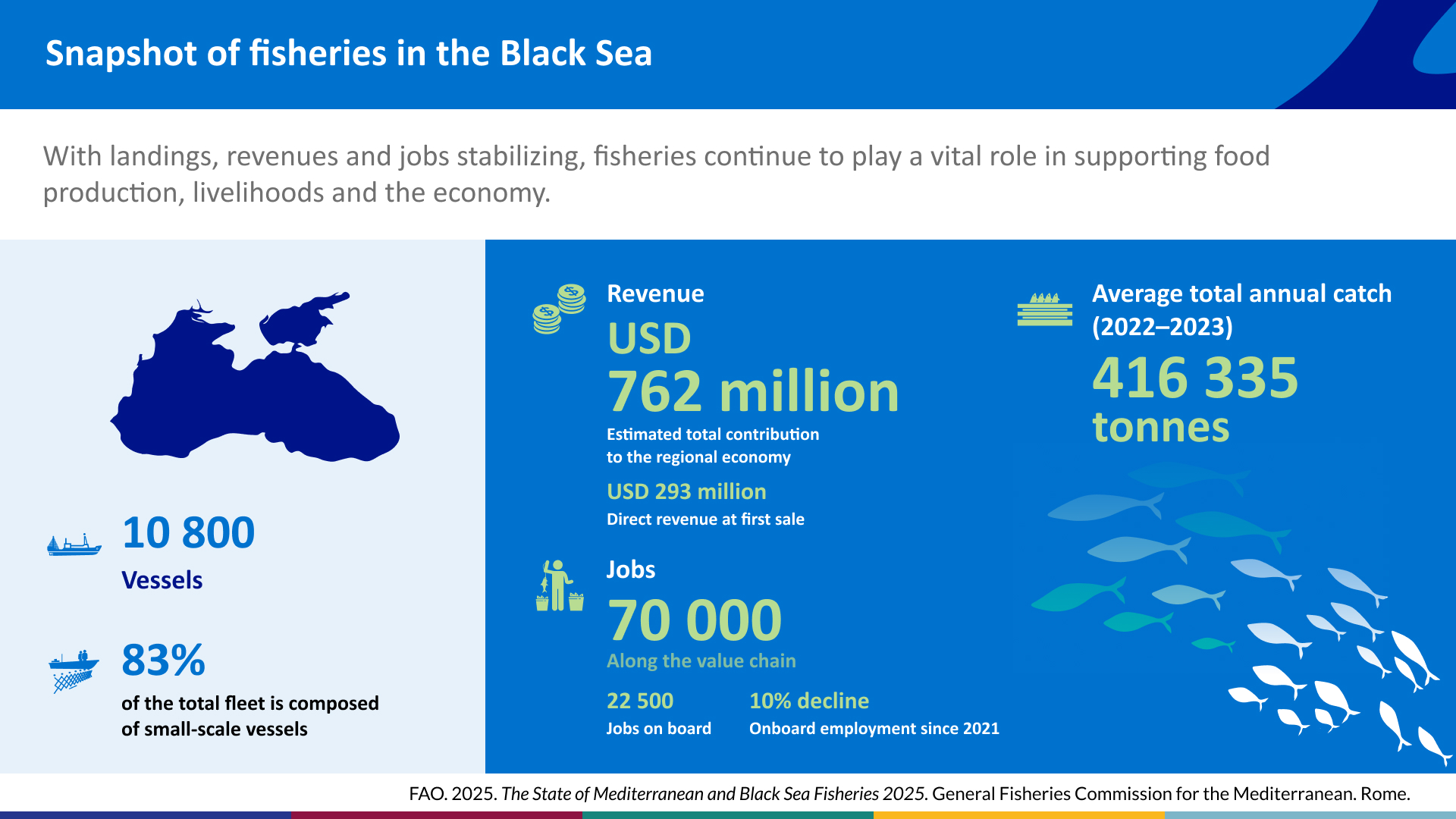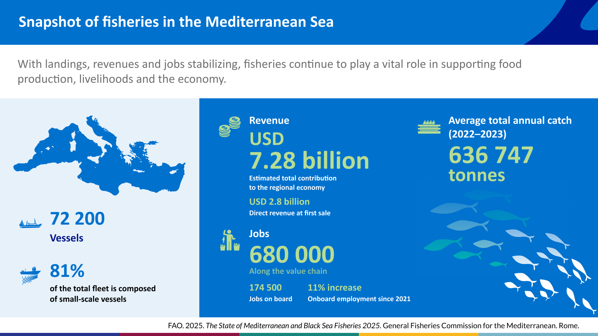 The State of Mediterranean and Black Sea Fisheries 2025 is the most ambitious edition to date – the result of an unprecedented collaborative effort across the region, compiling the work of over 700 experts, with all participating countries contributing data and expertise.
