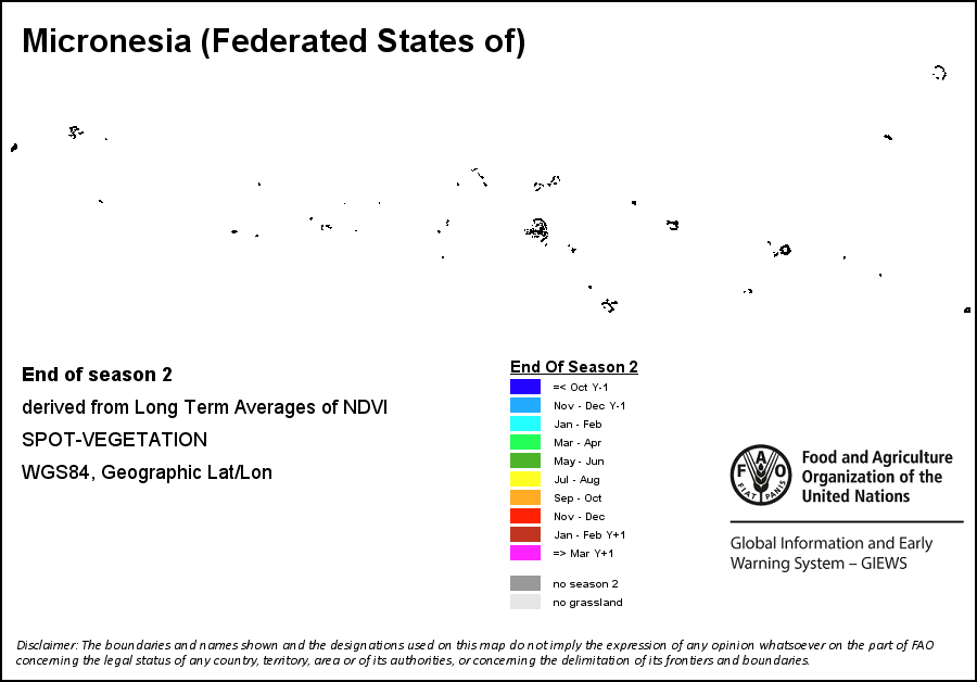 El fin de la temporada (EOS) indica cuando los pastos comienzan a marchitarse, y en general se refiere al final de la temporada de lluvias, considerado el punto en el que el NDVI se encuentra al 25 por ciento de su valor máximo.