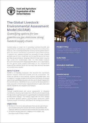 GLEAM-i is an online, Tier 2, greenhouse gas (GHG) calculator specific to the livestock sector. It brings the core functionalities of the FAO Global Livestock Environmental Assessment Model (GLEAM) to the public in a web application. The current version of GLEAM-i allows the direct comparison between Baseline and Scenario conditions and includes the 2010 background data from GLEAM 2.0 as default. GLEAM-i is designed to support governments, project planners, producers, industry and civil society organizations. It can be used in the preparation of national GHG inventories, Nationally Determined Contributions (NDC) and in ex-ante project evaluation for estimating the climate co-benefits of technical improvements in animal husbandry, feed and manure management.