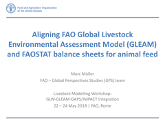 Presentación de Marc Müller en el Taller de la FAO sobre modelos ganaderos: Mapas en cuadrícula de la ganadería mundial (GLW) - Modelo de contabilidad ambiental para la ganadería mundial (GLEAM) - Sistema de perspectivas agrícolas mundiales (GAPS) / Modelo internacional para el análisis de políticas de los productos y el comercio agrícolas (IMPACT) [Roma, Italia / 22-24 de mayo de 2018].