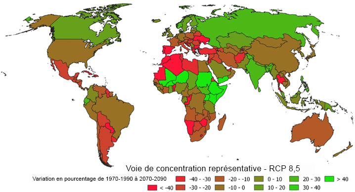 Projections des ressources en eau renouvelables totales futures par pays pour les différents scénarios de changement climatique disponibles