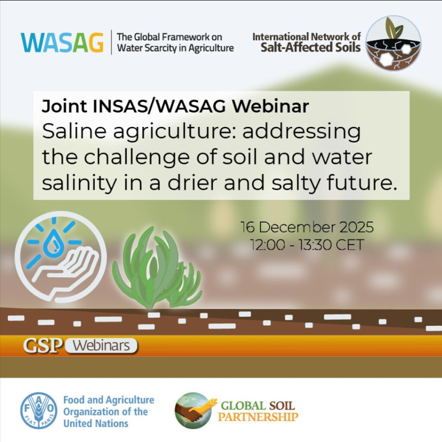 Joint INSAS/WASAG Webinar "Saline agriculture: addressing the challenge of soil and water salinity in a drier and salty future" | 16 December 2025, 12:00 - 13.30 CET