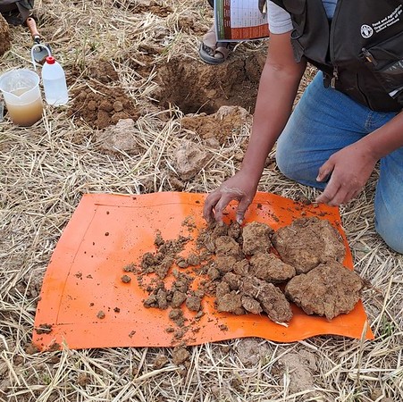 Training sessions combined presentations and hands on field exercises, conducted in Arabic and French, using illustrated posters and simple diagnostic tools. Participants learned how to visually assess soil texture, structure, organic matter, pH and root development directly in the field.