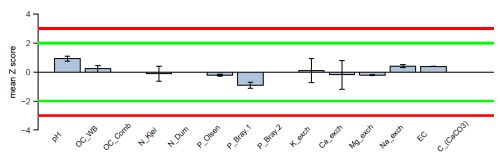 Figure 1. Results from the statistical analysis of data submitted by two laboratories that participated in the GLOSOLAN PT 2019
