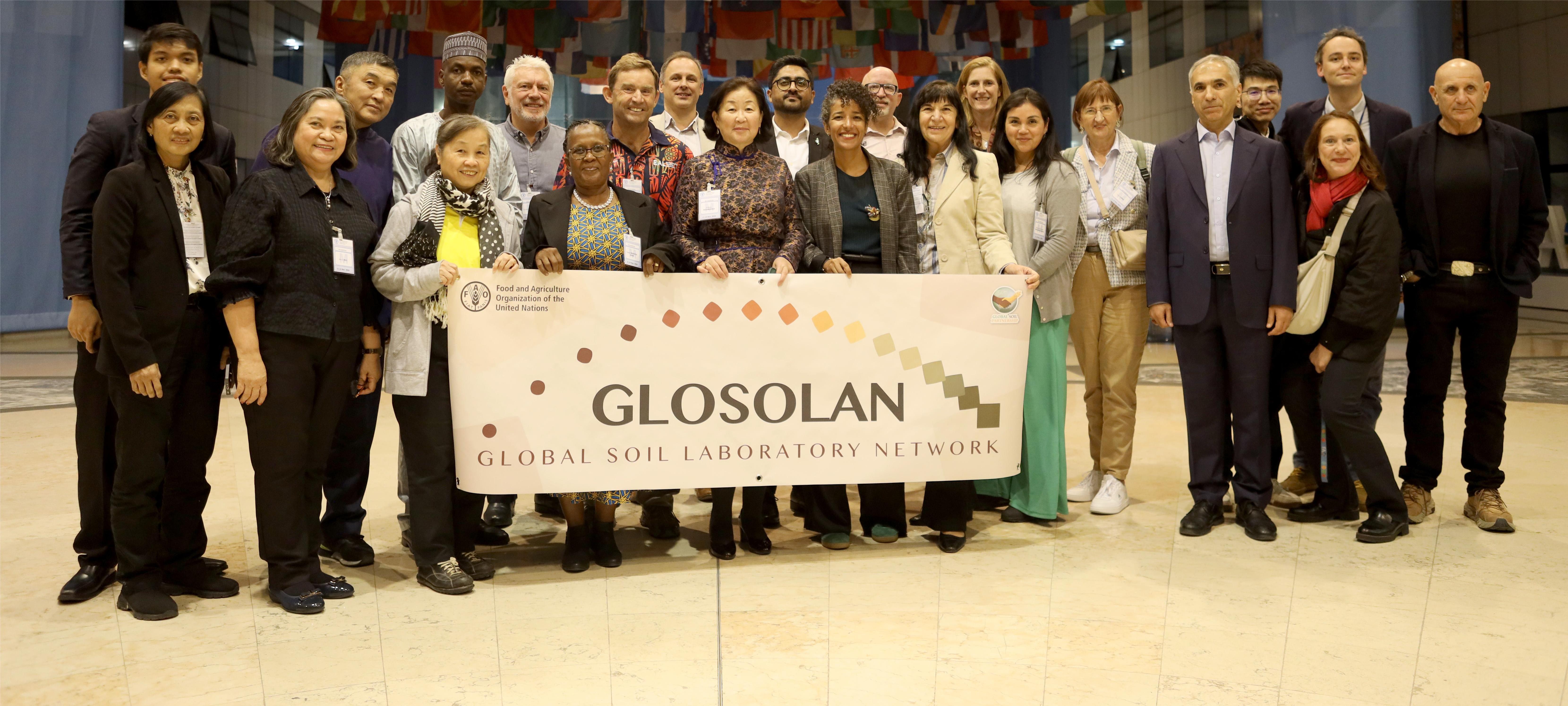 The eighth meeting of the Global Soil Laboratory Network (GLOSOLAN) was held from 11 to 13 November 2024 at FAO headquarters in Rome (Italy). The hybrid event brought together 26 in-person attendees and approximately 500 online participants. It included members of the GLOSOLAN steering committee, representatives of the GLOSOLAN-Spec (soil spectroscopy) working group, and the Chairs of the regional soil laboratory networks who attended in person. Meanwhile, other participants joined virtually. This event marked the network's first in-person gathering since 2019, following disruptions caused by the COVID-19 pandemic.