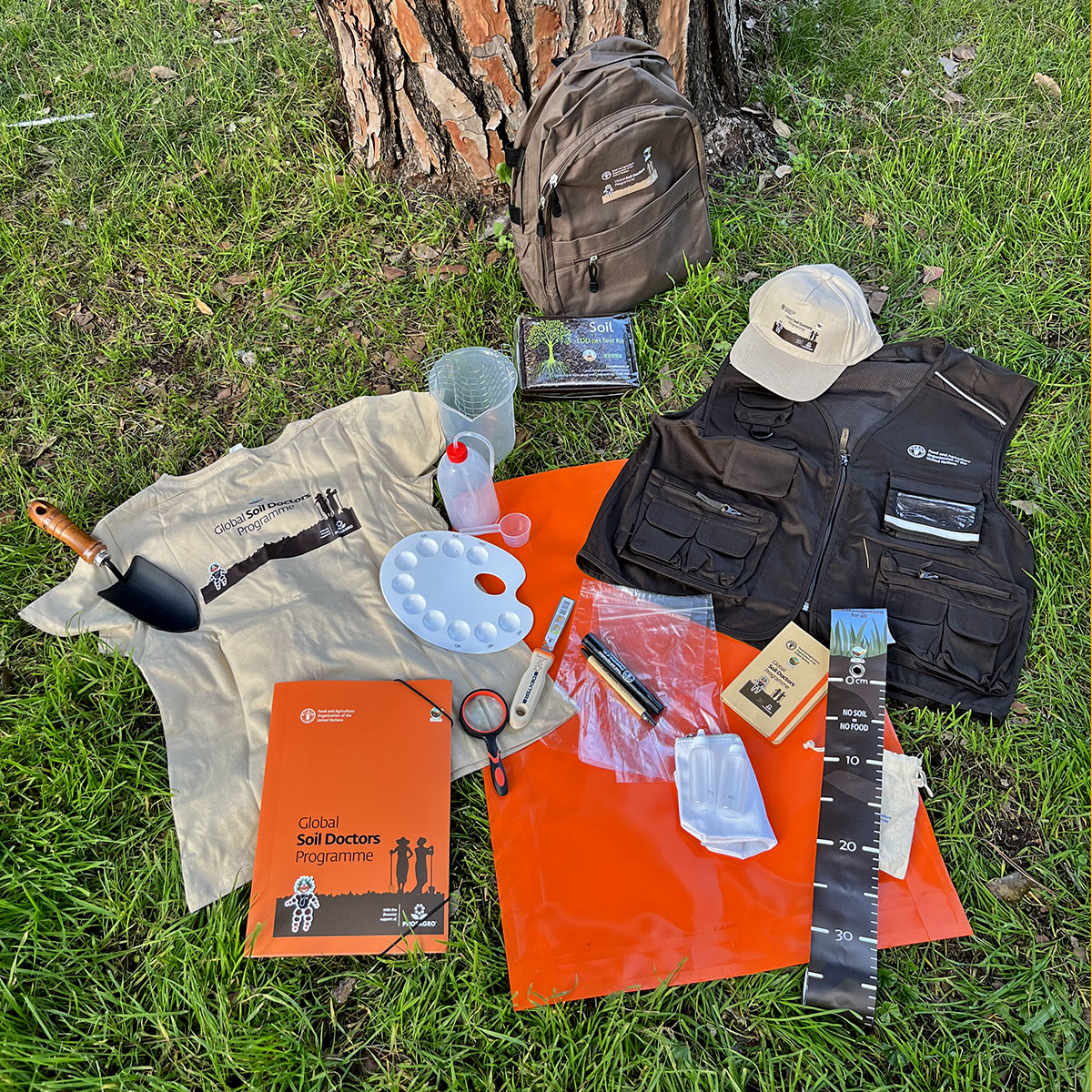 Along with the educational kits, trainers and Soil Doctors receive branded elements (cap, vest and t-shirt) identifying them as local leaders and advocates of sustainable soil management in the country.