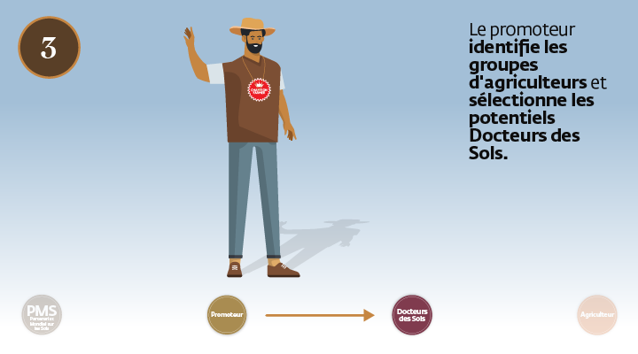 Le promoteur identifie les groupes d'agriculteurs et sélectionne les Docteurs des Sols potentiels