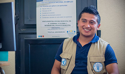 “Ahora trabajo como técnico encargado de la Ventanilla Única Municipal de Empleo (VUME) que tiene un énfasis en el tema juventud rural” indica el joven. Esta ventanilla, ubicada en Tejutla, San Marcos, por su enfoque rural es diferente al resto de ventanillas que promueve el Ministerio de Trabajo (MINTRAB). Es un proyecto piloto en el que están involucrados la alcaldía municipal, el Ministerio de Trabajo (MINTRAB) y la Organización de las Naciones Unidas para la Alimentación y la Agricultura (FAO), a través de su Programa Enfoque Integrado de País (ICA) para la Promoción del Empleo Rural Decente en Guatemala.