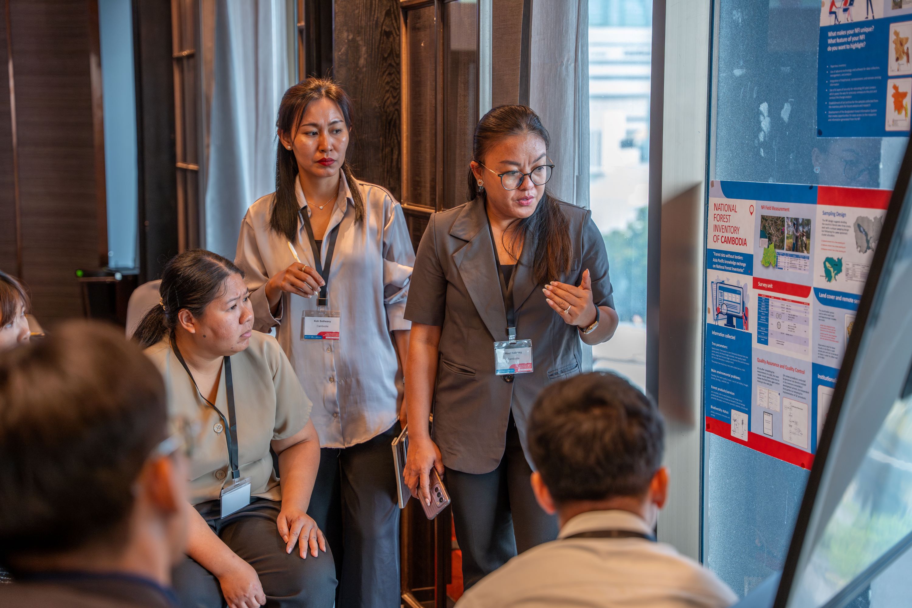 In a series of poster sessions, all participating countries had the opportunity to present key features of their NFIs — from sampling design and implementation challenges to data dissemination practices. These sessions encouraged open exchanges, allowing delegates to share their experiences, receive feedback, and reflect on what practices they might want to adopt or adapt. The discussions revealed both common ground and important differences in approaches, helping to build mutual understanding across the region. They also led to requests for further collaboration, including bilateral exchanges and data-sharing efforts among countries eager to learn from one another's experiences and strengthen their forest monitoring systems together.