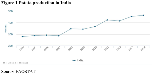 In India, a large number of small-scale farmers grow potatoes for self-consumption, rather than as a business. Potato cultivation requires intensive capital and inputs, which in most cases are not available to smallholder farmers. Potatoes are often produced in low productive areas with soil problems. Moreover, production inputs, such as fertilizers and agrochemicals, are expensive, so farmers tend to use inferior quality input, particularly inferior potato seeds (Singh and Rana, 2014).