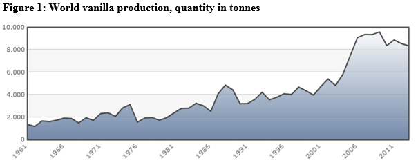 The vanilla market has always been a complex one. Vanilla prices tend to be very volatile due to the alternation of product abundancy and scarcity (the product is very sensitive to weather conditions). In the periods of abundancy farmers have to sell the product at very low unitary price/kg and this force them, in some cases, to abandon their plantations. This in turn causes price increases due to lack of supply. High prices slow the demand causing a reduction in consumption. In 2000, vanilla prices were so low that certain countries became disinterested in vanilla production.