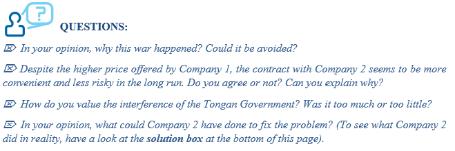 However, as of April 2017, the “war” was still ongoing and Company 2 was disappointed on not getting return on its investment in Tonga. In the last communication with informants it was highlighted that the problem was expected to worsen, since the 2017 harvest forecast was bleak.