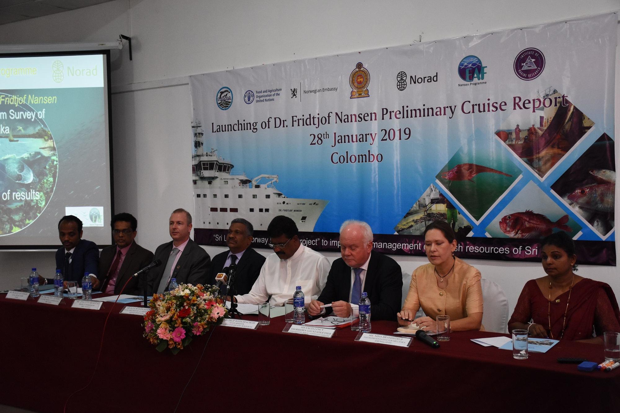 An event was organized on 28 January 2018 in Colombo, Sri Lanka, to launch the main research findings of the survey carried out by the Norwegian Research Vessel Dr. Fridtjof Nansen in Sri Lanka during the past year.
