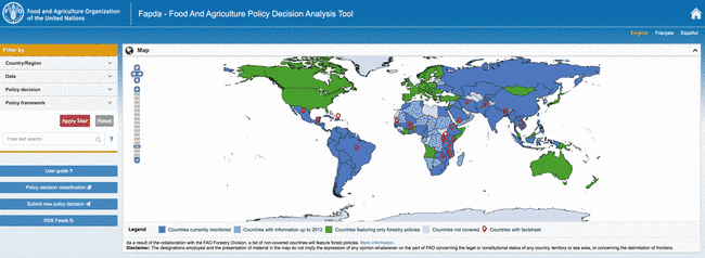 The Food and Agriculture Policy Decision Analysis (FAPDA) is a FAO initiative that aims to promote evidence-based decision making by providing up-to-date information on national policy decisions and policy frameworks, through the FAPDA policy database.